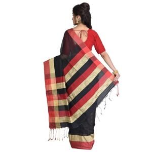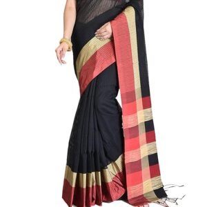 Women’s Bengali Handloom Cotton Blended/Silk Saree -With Blouse Piece (Black)